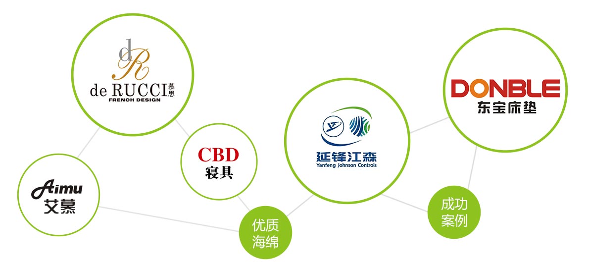本公司產品廣泛應用于寢具、高檔沙發、乘用車坐墊及內飾、運動器材、嬰幼兒童車和醫療用品等多個行業領域。客戶多為行業的領導者,產品暢銷于華南區域,并出口到日本、美國、歐洲等國家。
